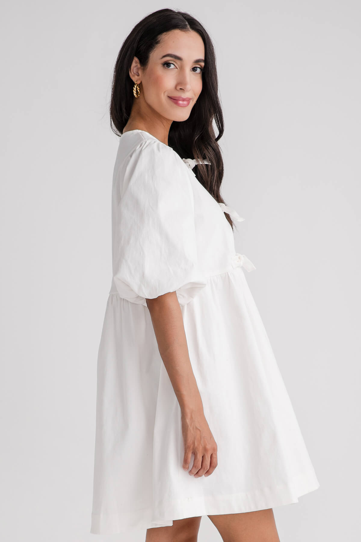 Puffed-sleeve A-line Denim Mini Dress