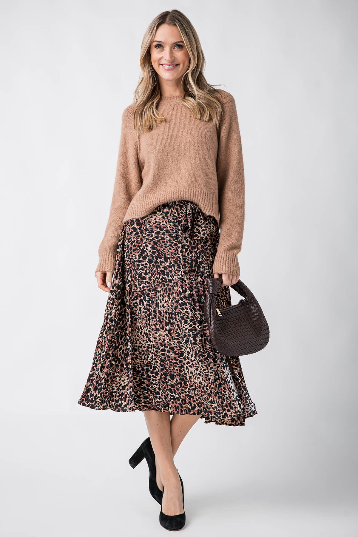 Leopard-print Wrap-style A-line Midi Skirt