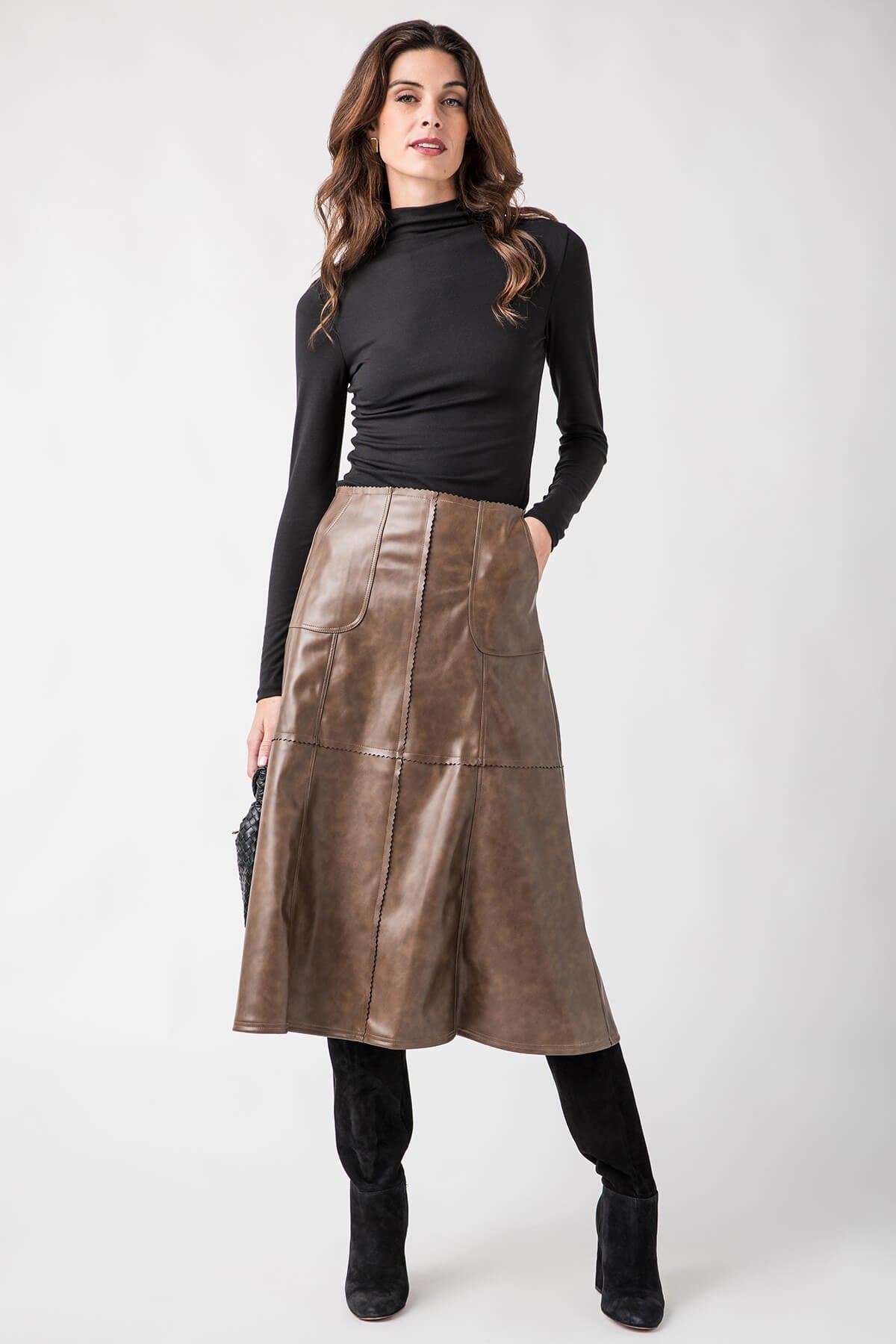 Vertical-seamed Shift-style Faux Suede Mini Dress