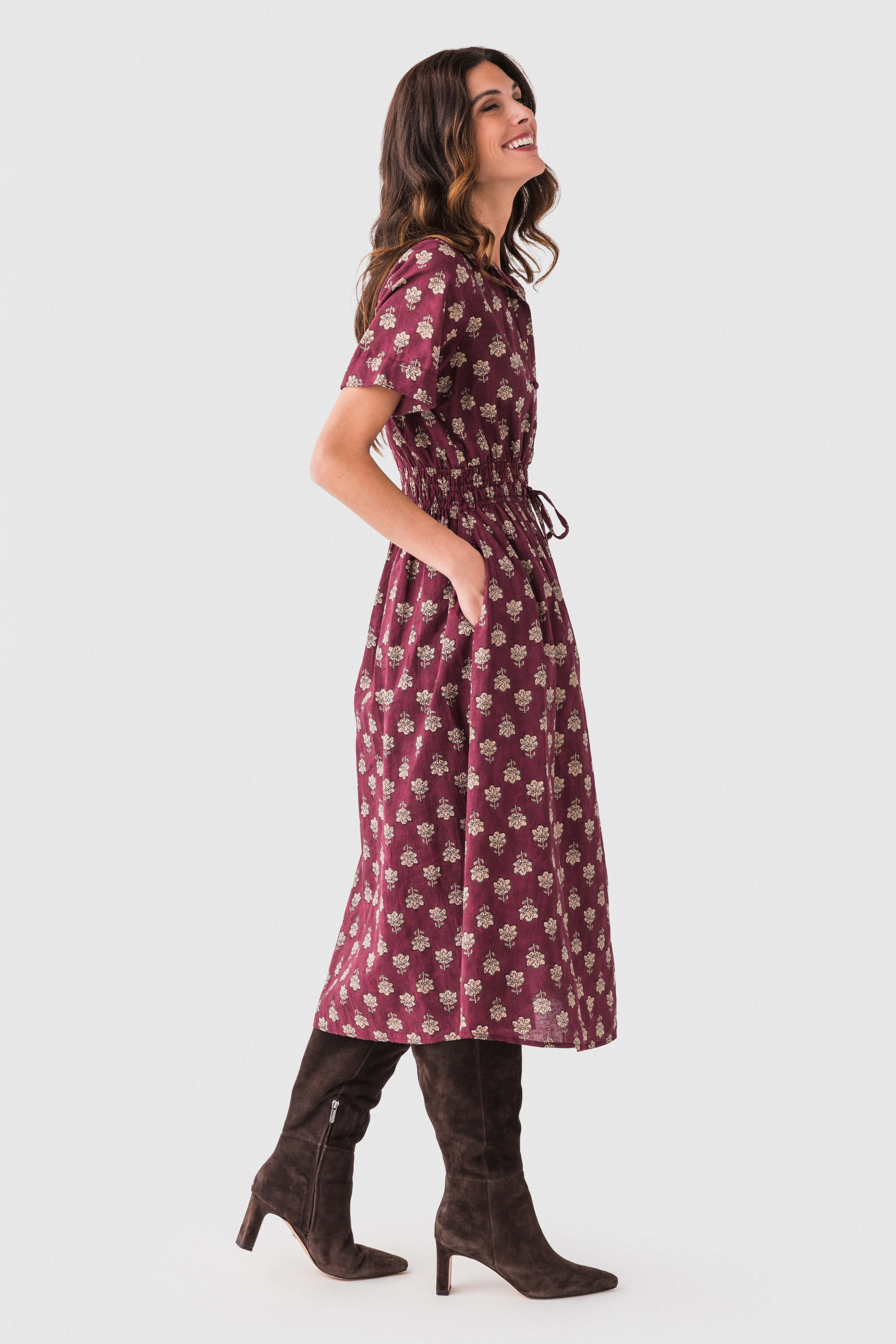 Floral-print Drawstring-waist Midi Dress