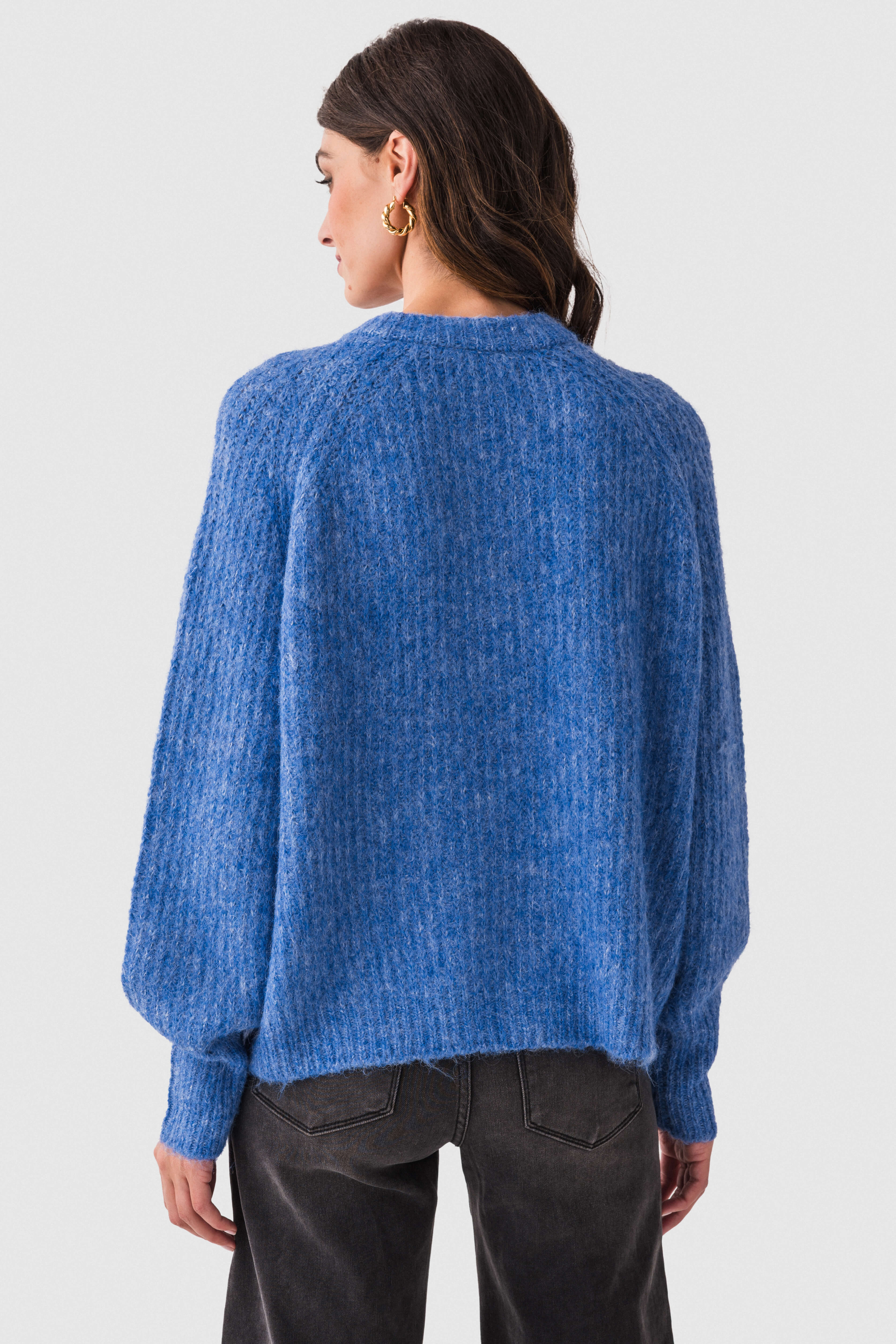 Puffed-sleeve Round-neck Oversized Knit Cardigan