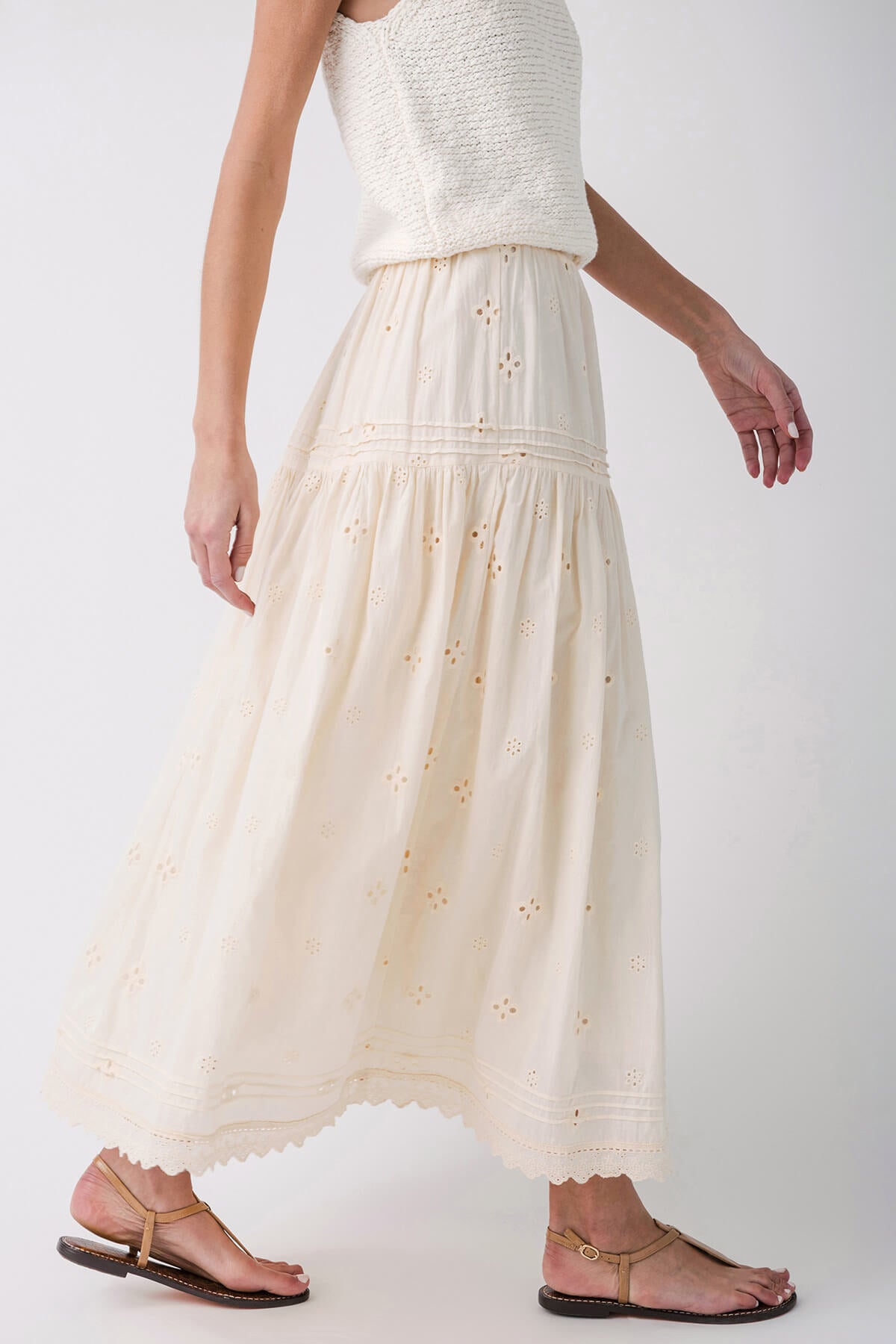 Scalloped-lace Eyelet Tiered Maxi Skirt