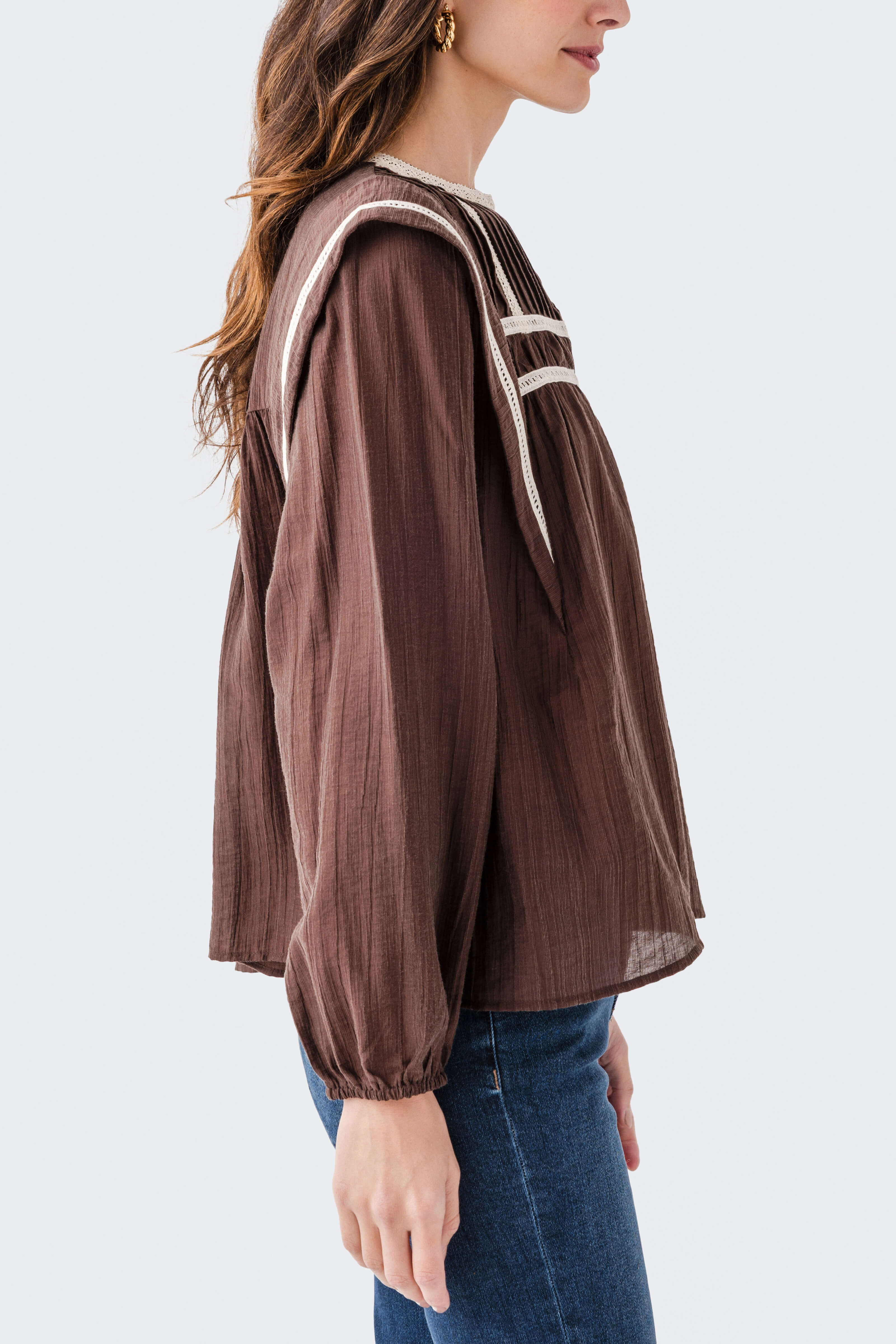 Peplum Ruffled Lace-trimmed Cropped Blouse