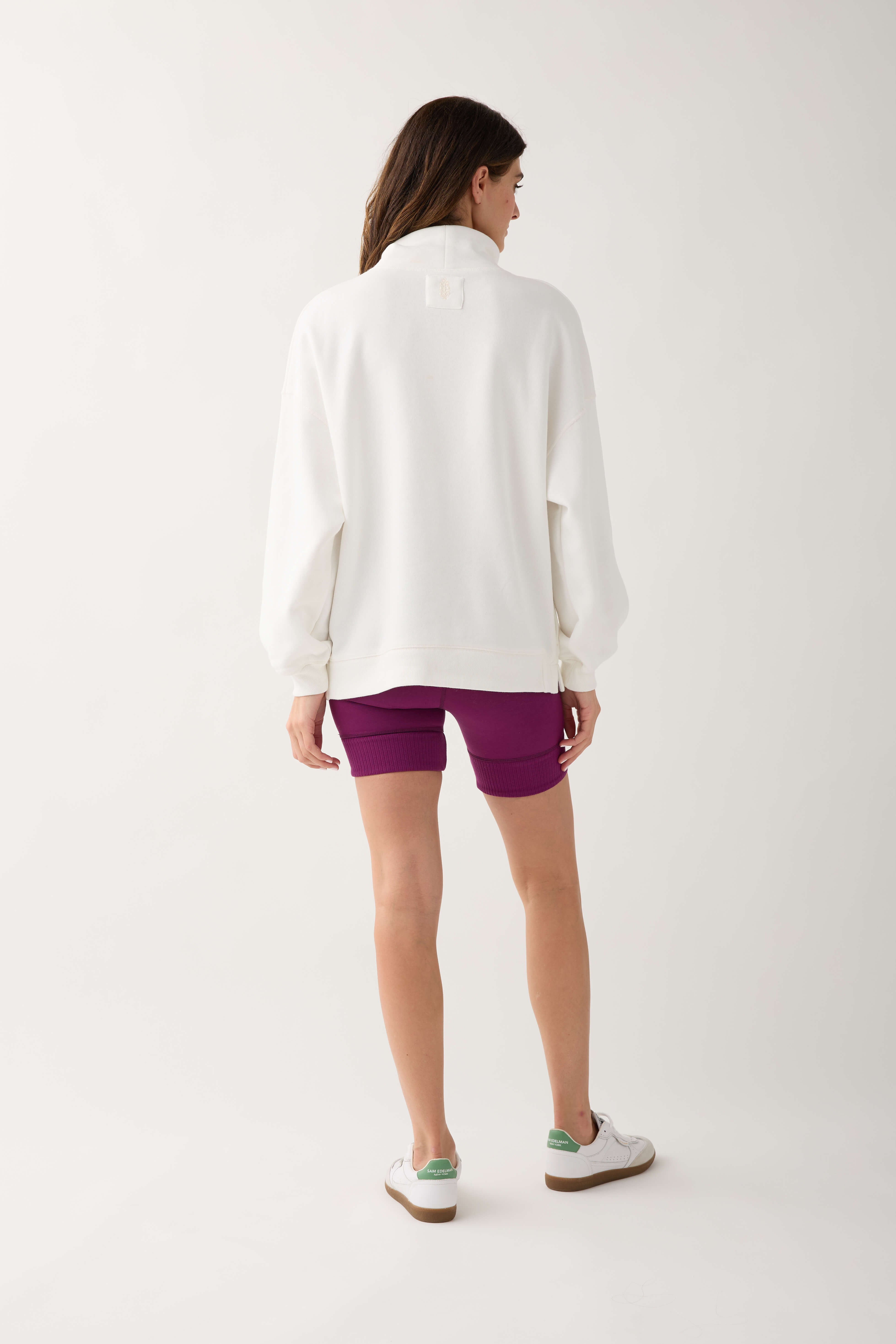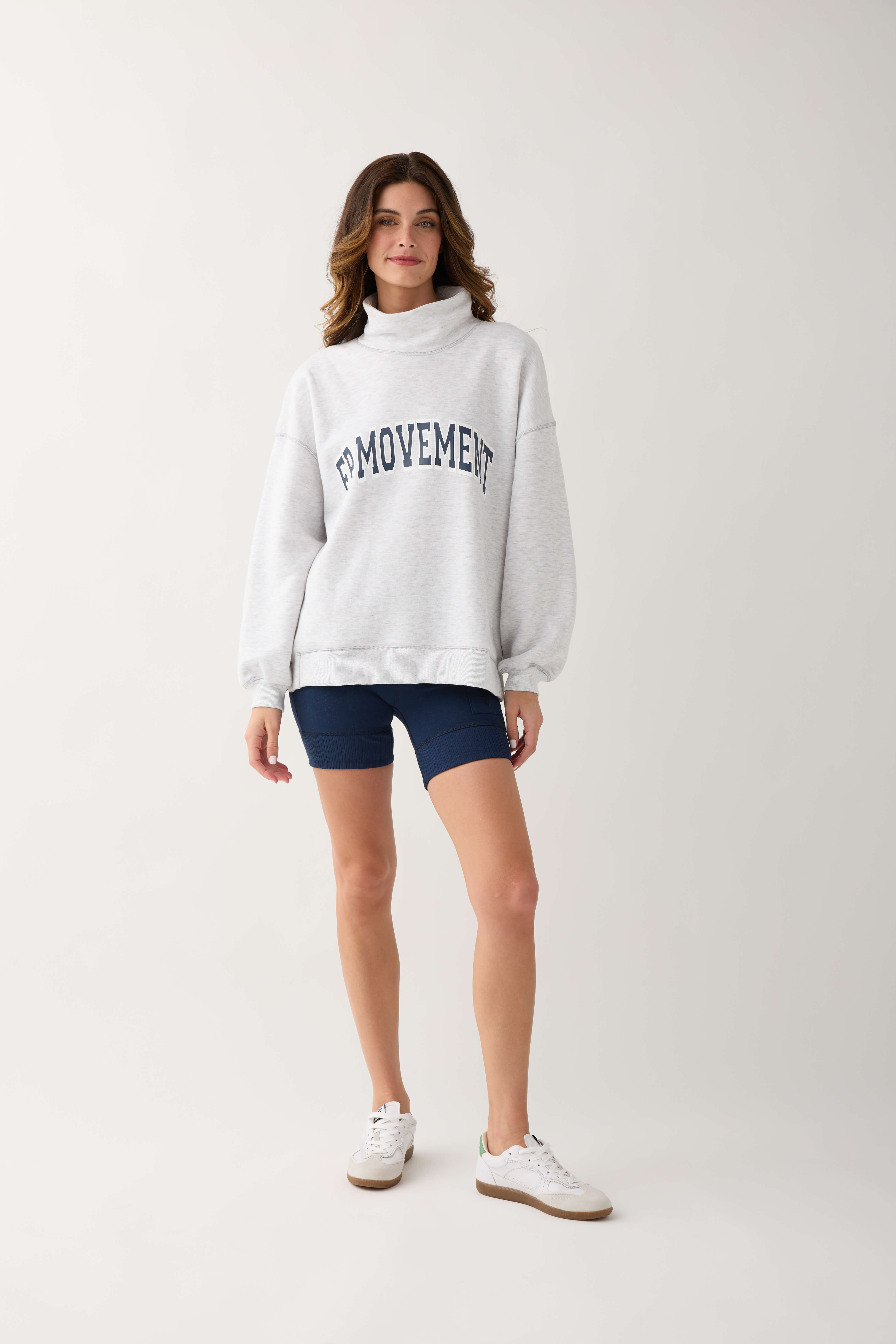 This is a high – collar oversized sweatshirt that offers a casual yet stylish look. It has a thick, soft fabric with a plush texture, and the interior is brushed for added comfort. Available in various color options, it features bold front graphics and a high, relaxed mock neck, making it suitable for both standalone wear and layering.