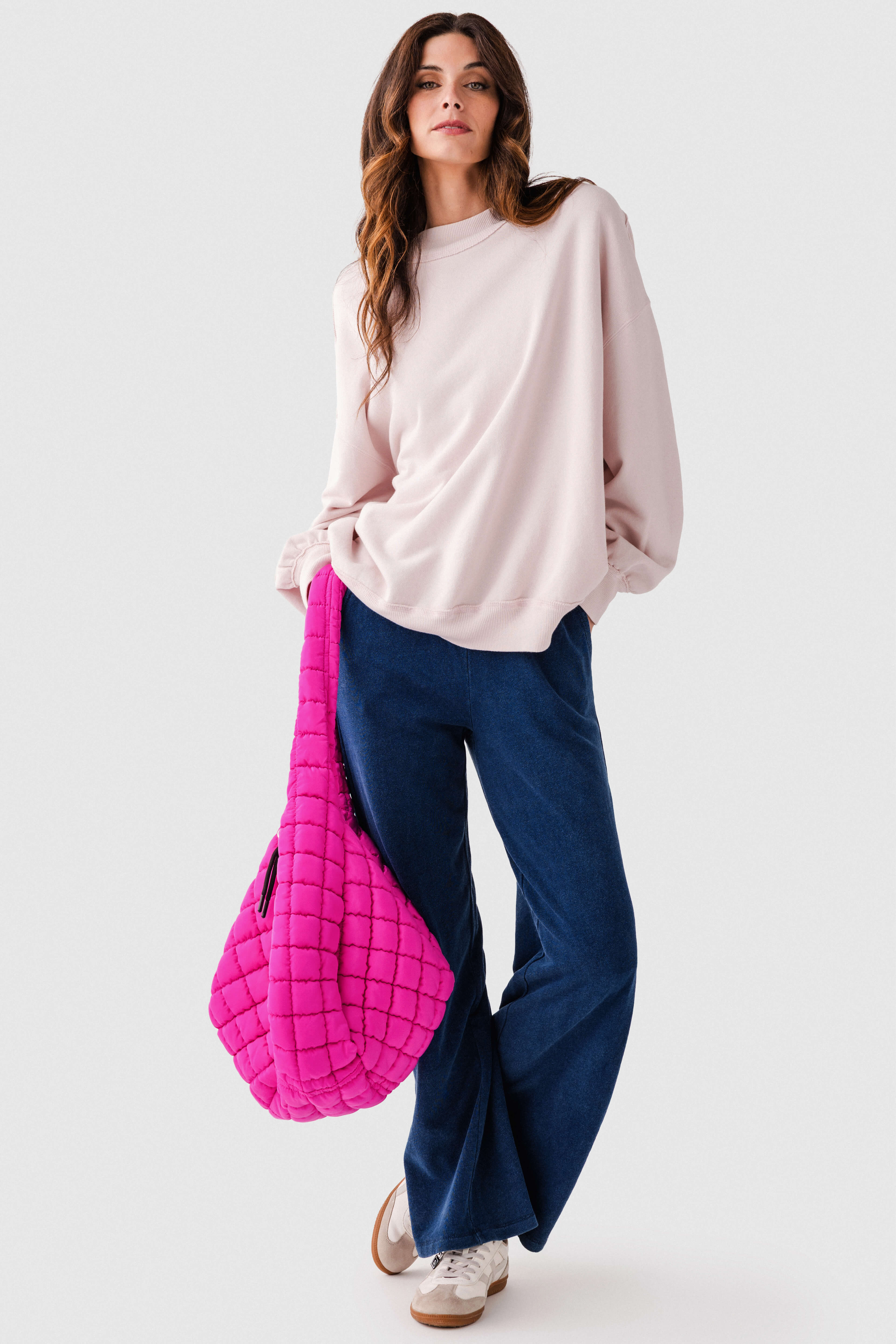 - Dropped shoulders for an oversized, casual feel