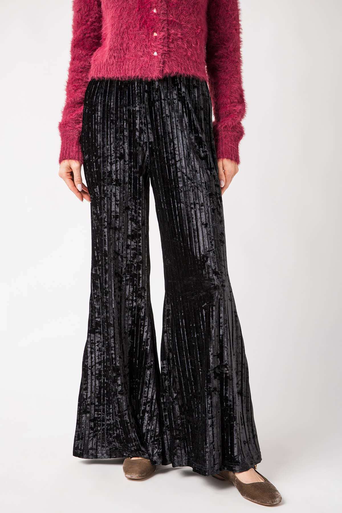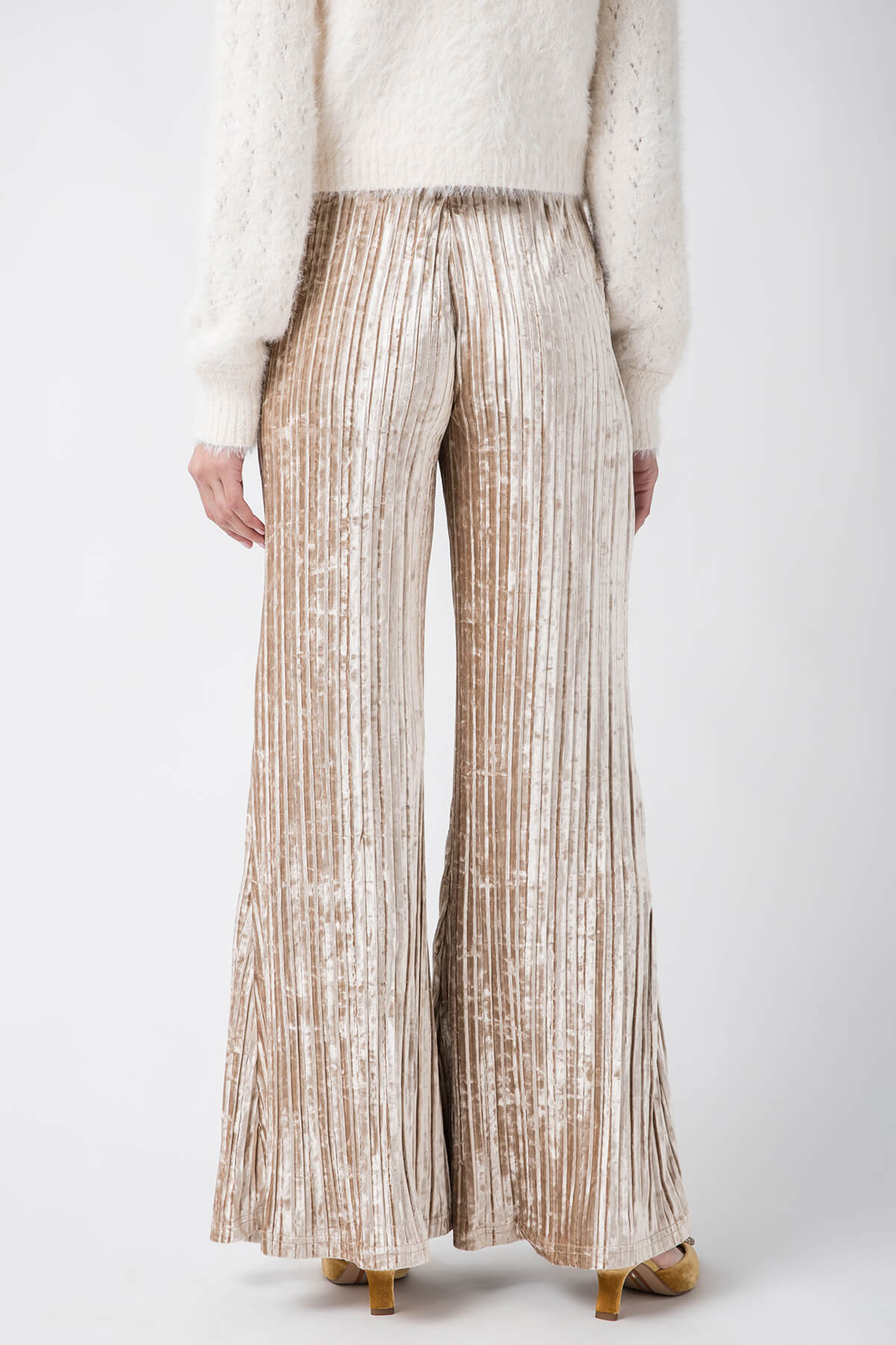 These women’s wide – leg trousers are a perfect blend of style and comfort. Crafted from a plush crushed velvet fabric with a vertical pleated texture, they have a high – waisted fit and a dramatic wide – leg flare. With a subtle sheen and a luxurious appearance, they are suitable for both casual and dressy events.