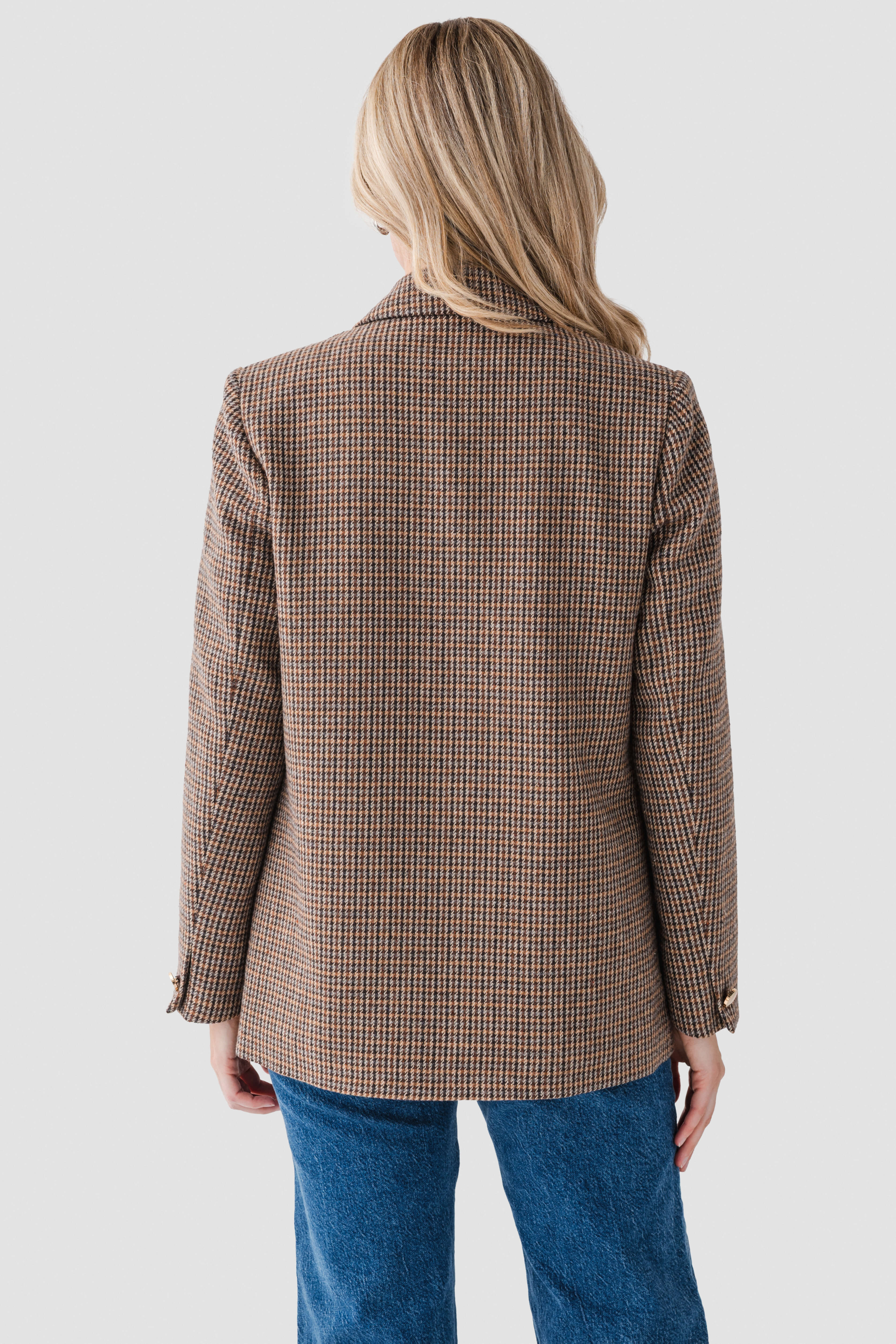 This women’s double-breasted houndstooth blazer is a versatile addition to any wardrobe. It features a warm earthy brown color with a subtle houndstooth pattern, giving it a vintage – inspired look. The blazer has a relaxed yet structured fit, suitable for layering and various occasions.