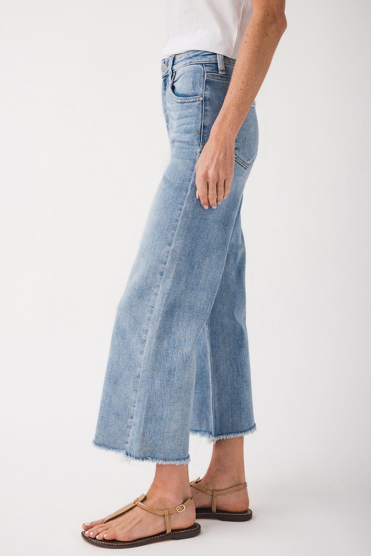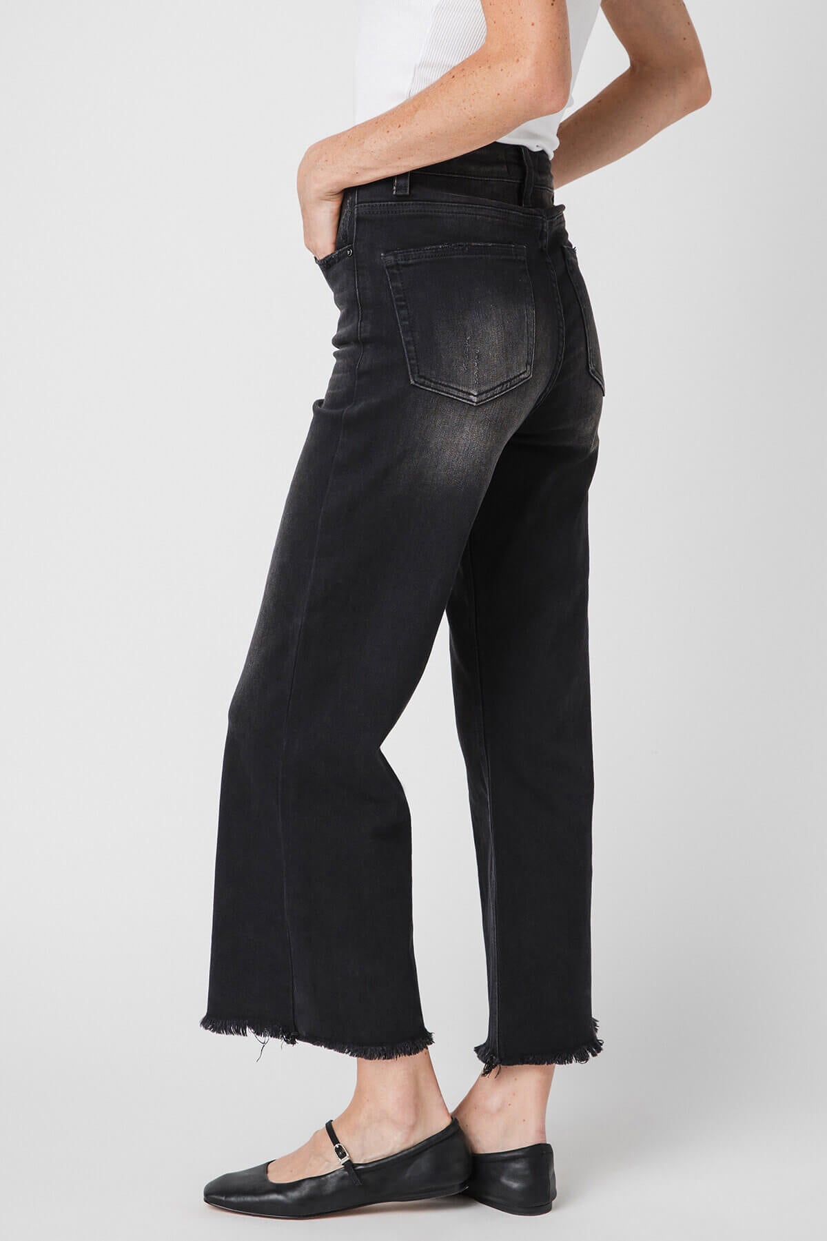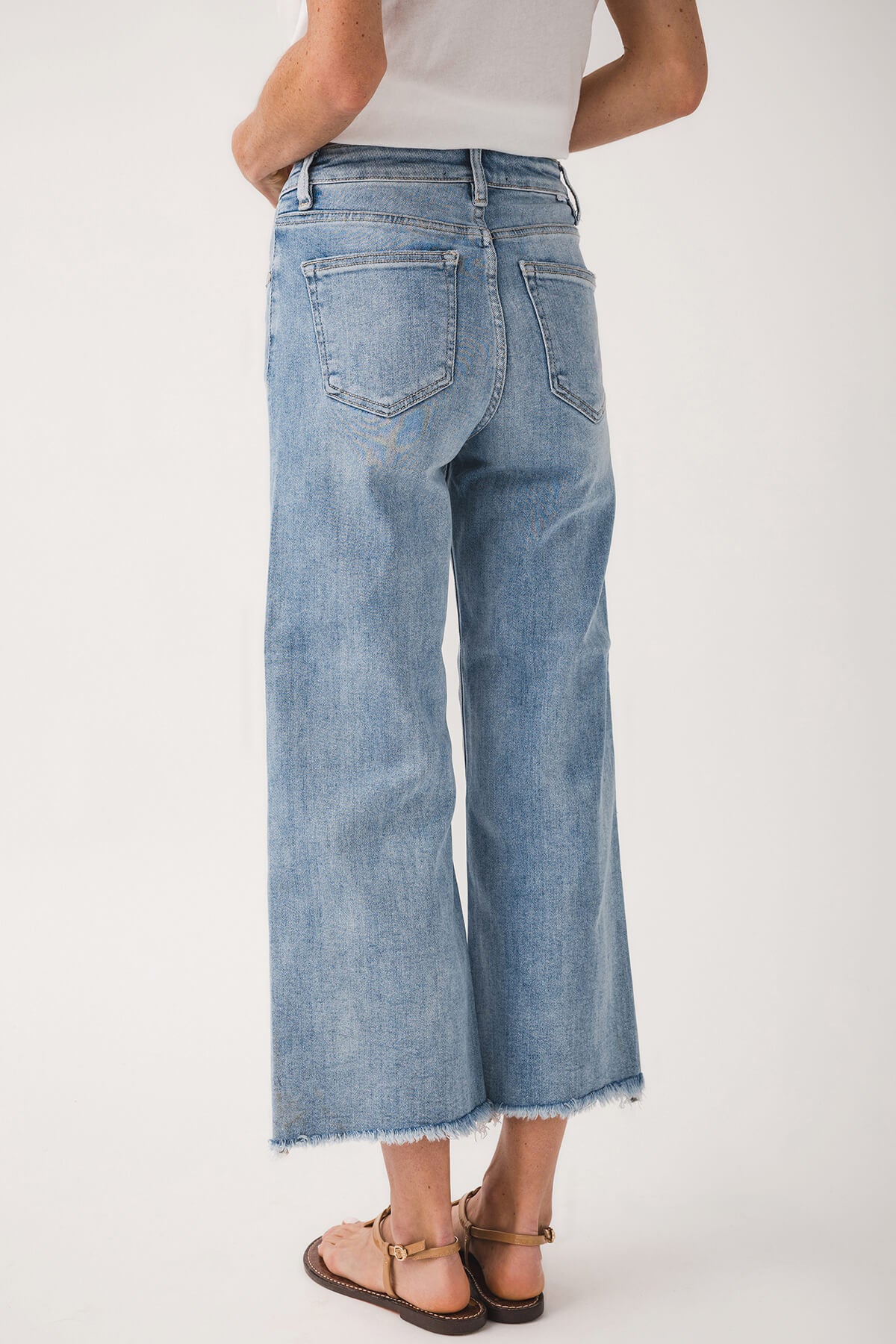 - Frayed raw hems for a casual, distressed finish
