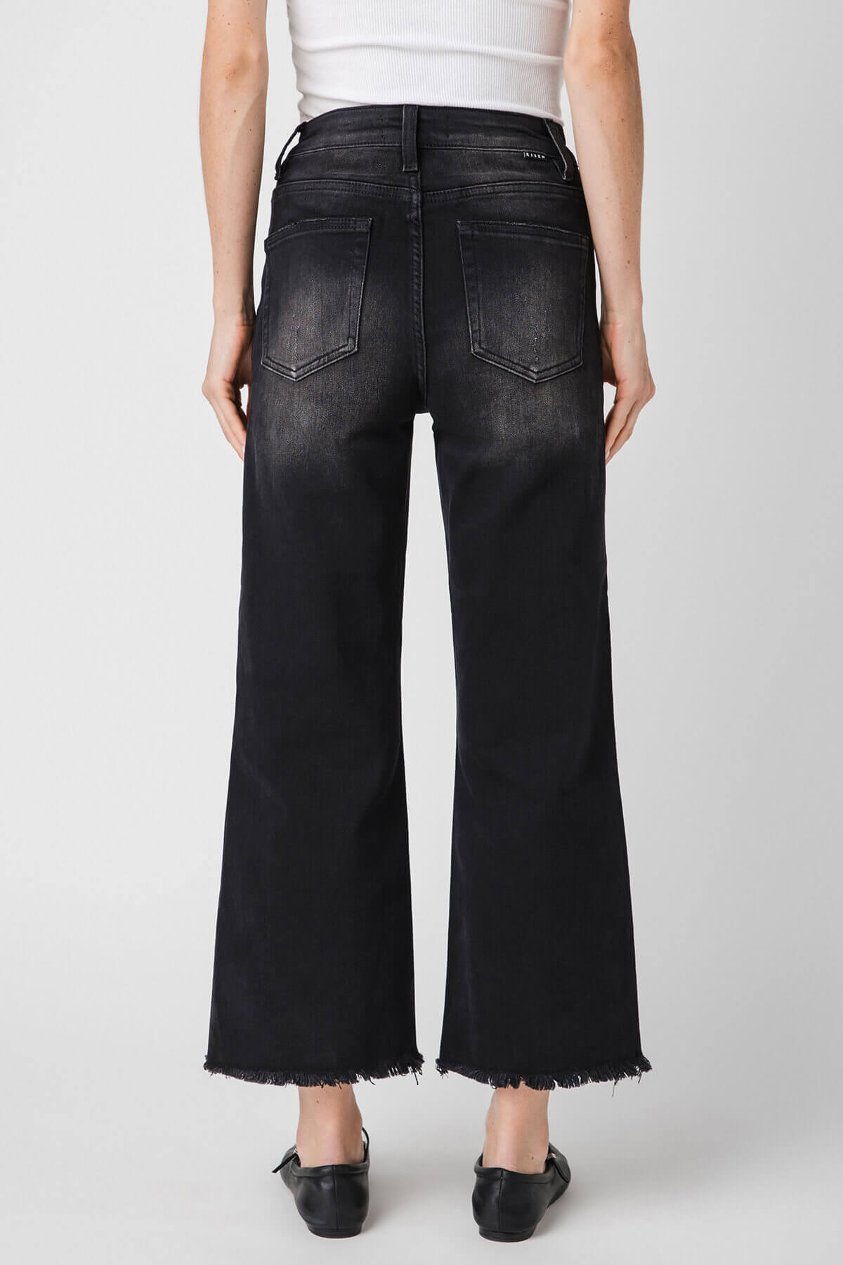 These women’s high-rise wide-leg cropped denim jeans offer a stylish and comfortable option for everyday wear. They come in different washes, including a light wash and a near – black faded denim. The cropped length hits above the ankle, and the frayed hems add a trendy, casual touch.