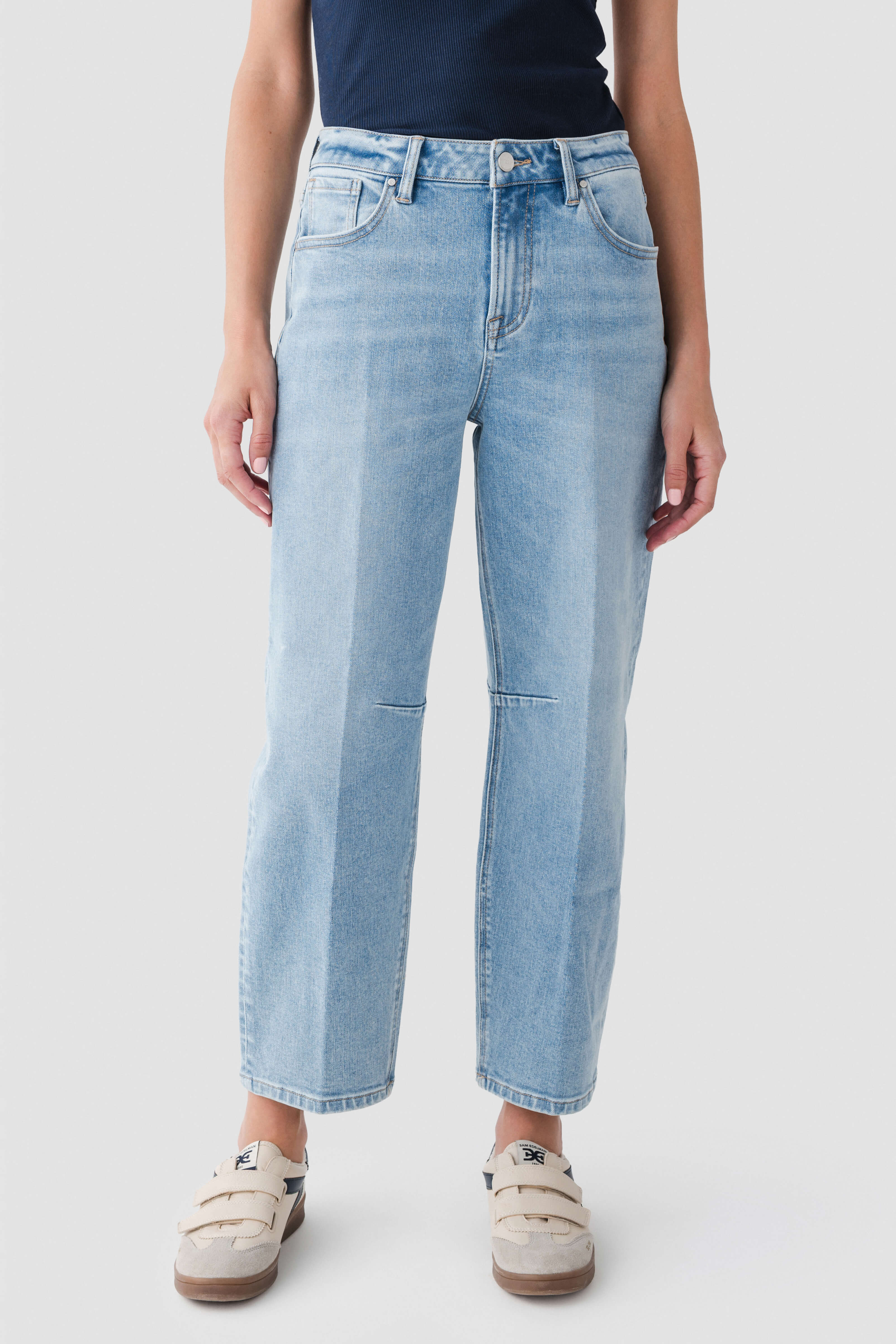 - Cropped ankle – length hem with a subtle frayed edge
