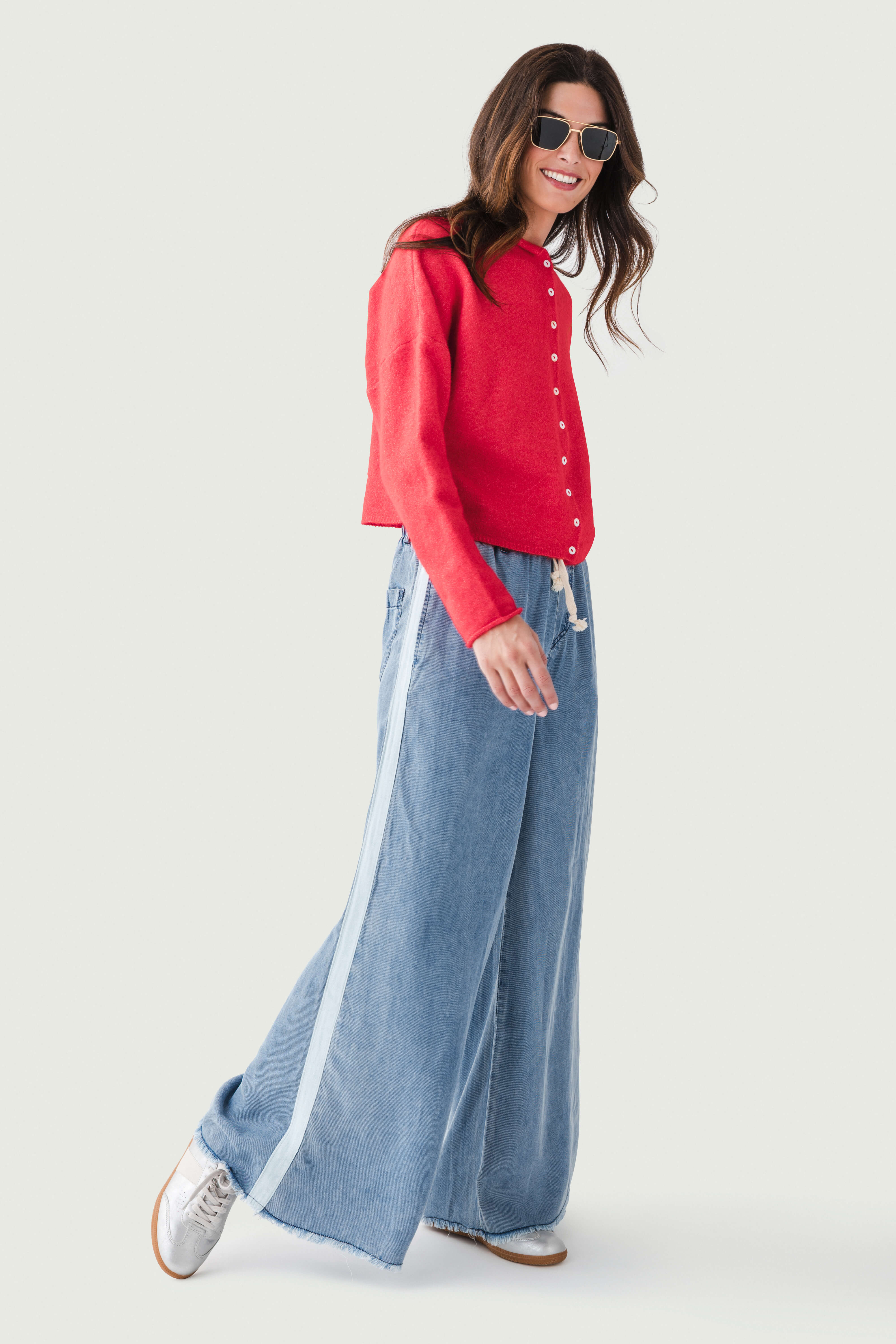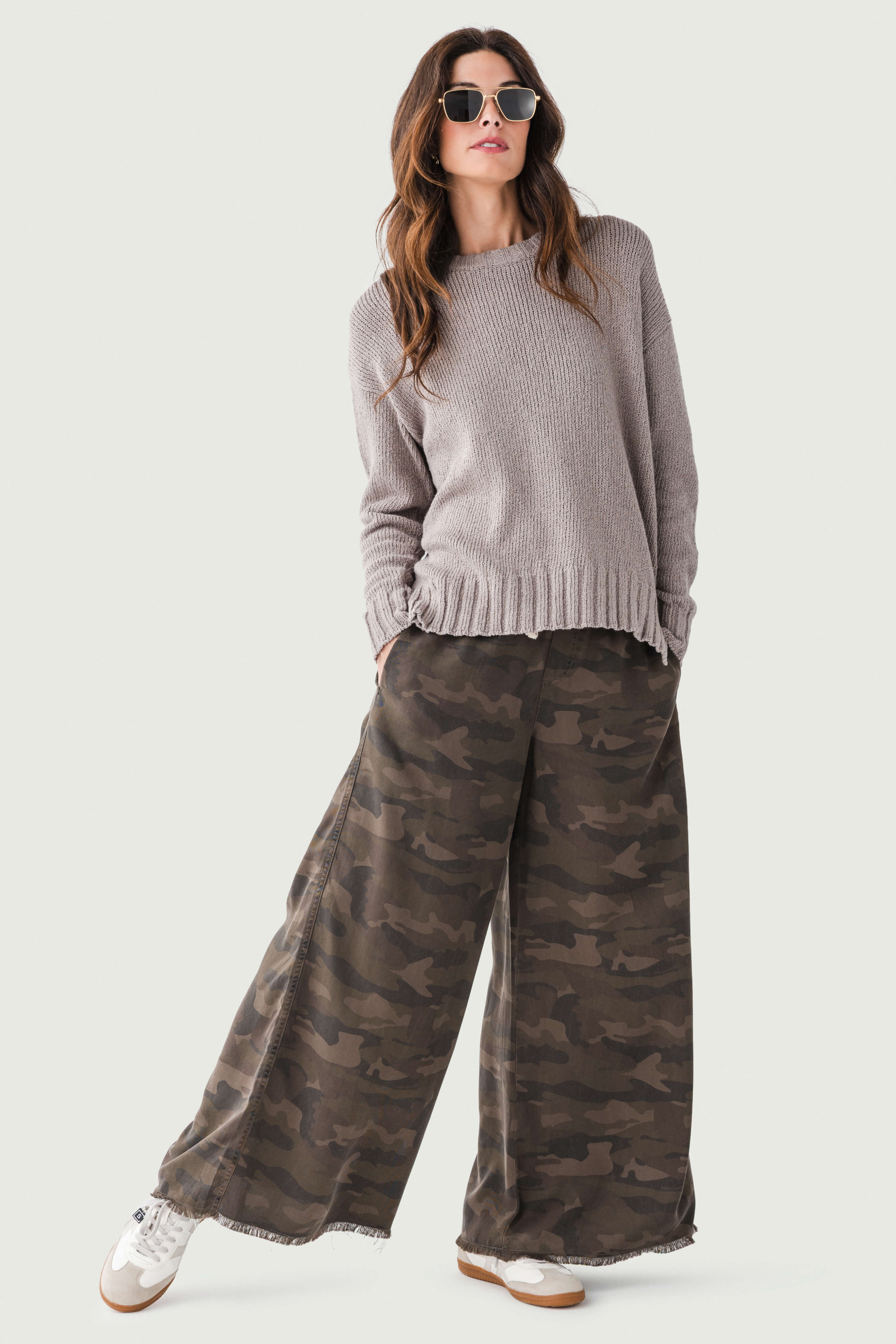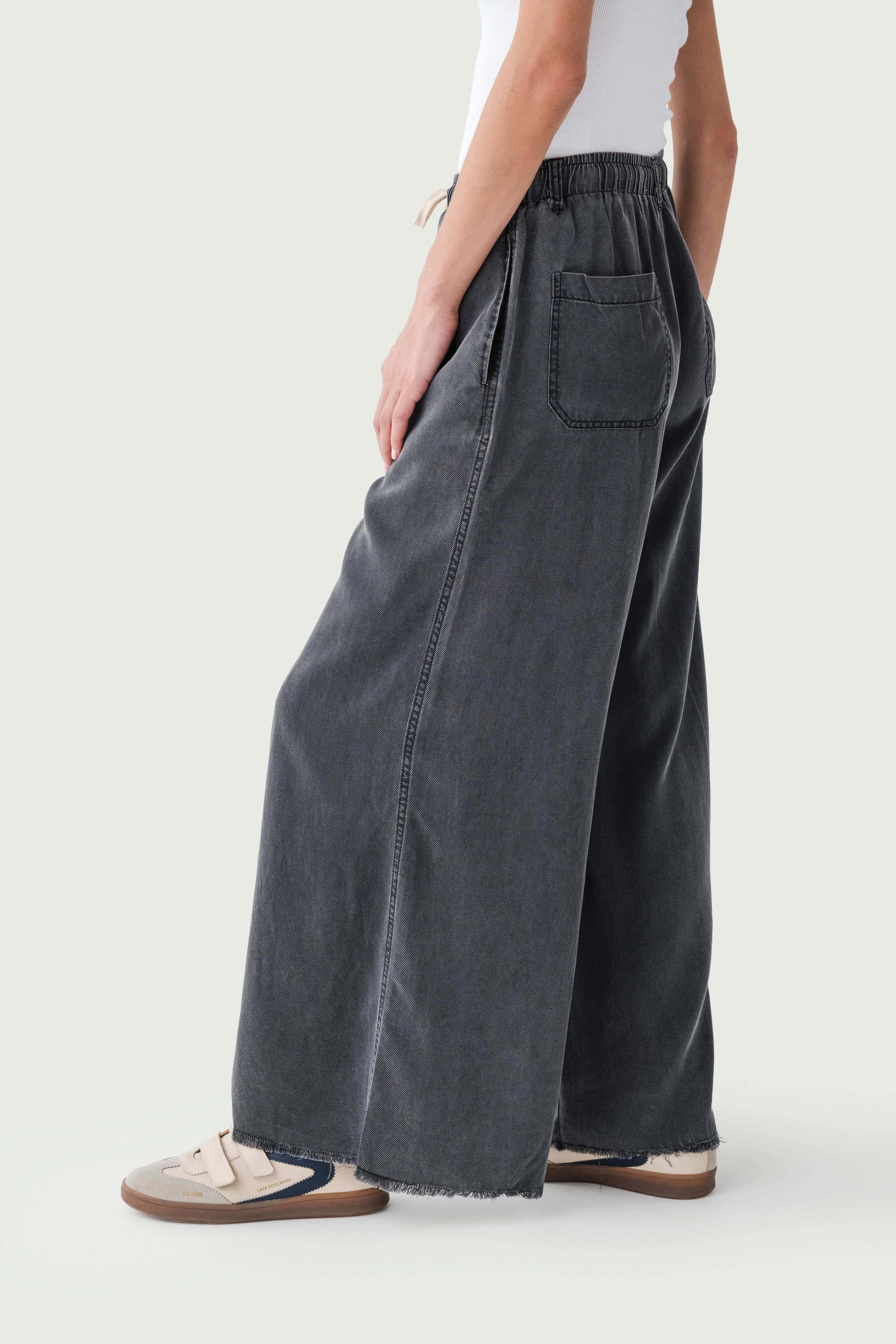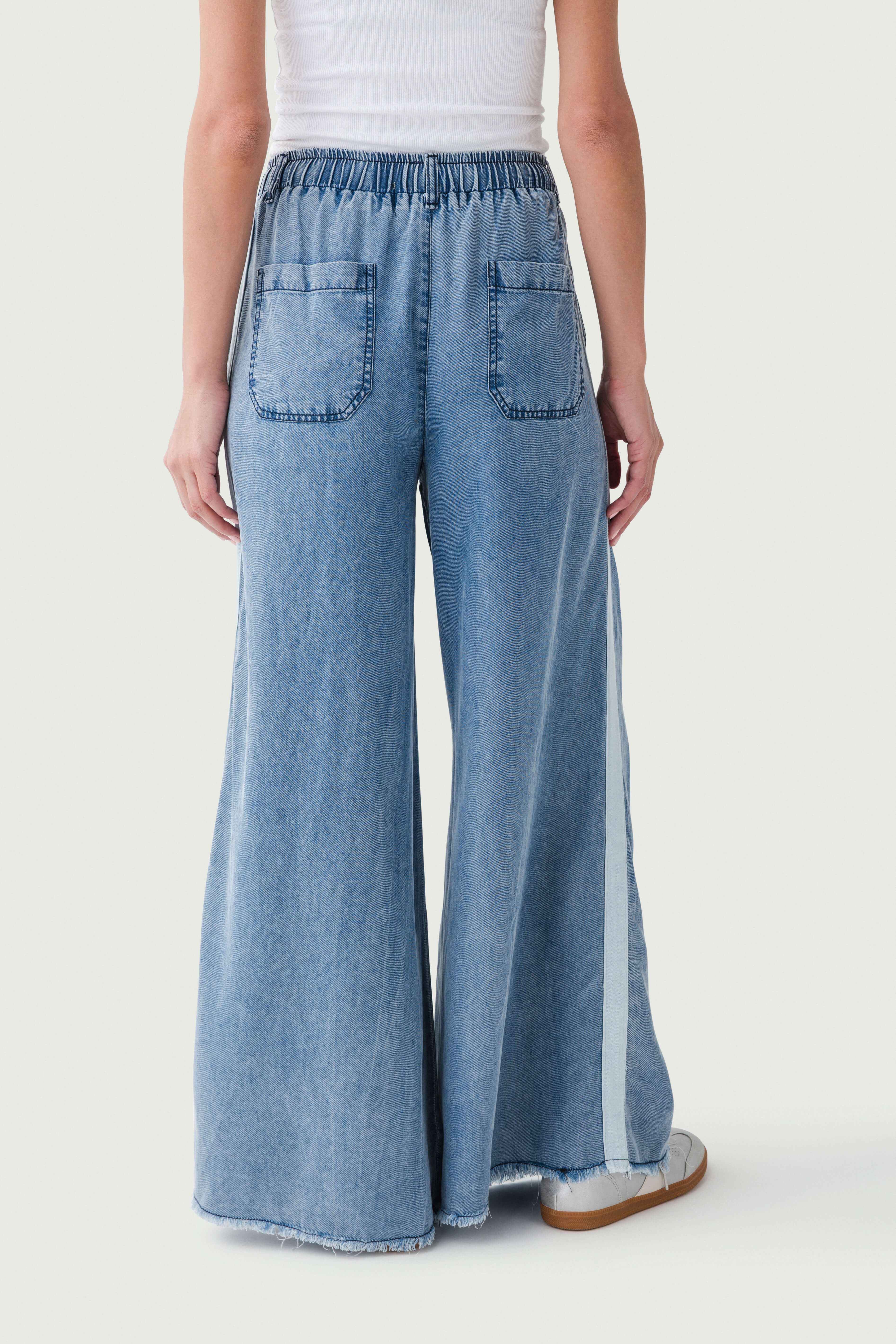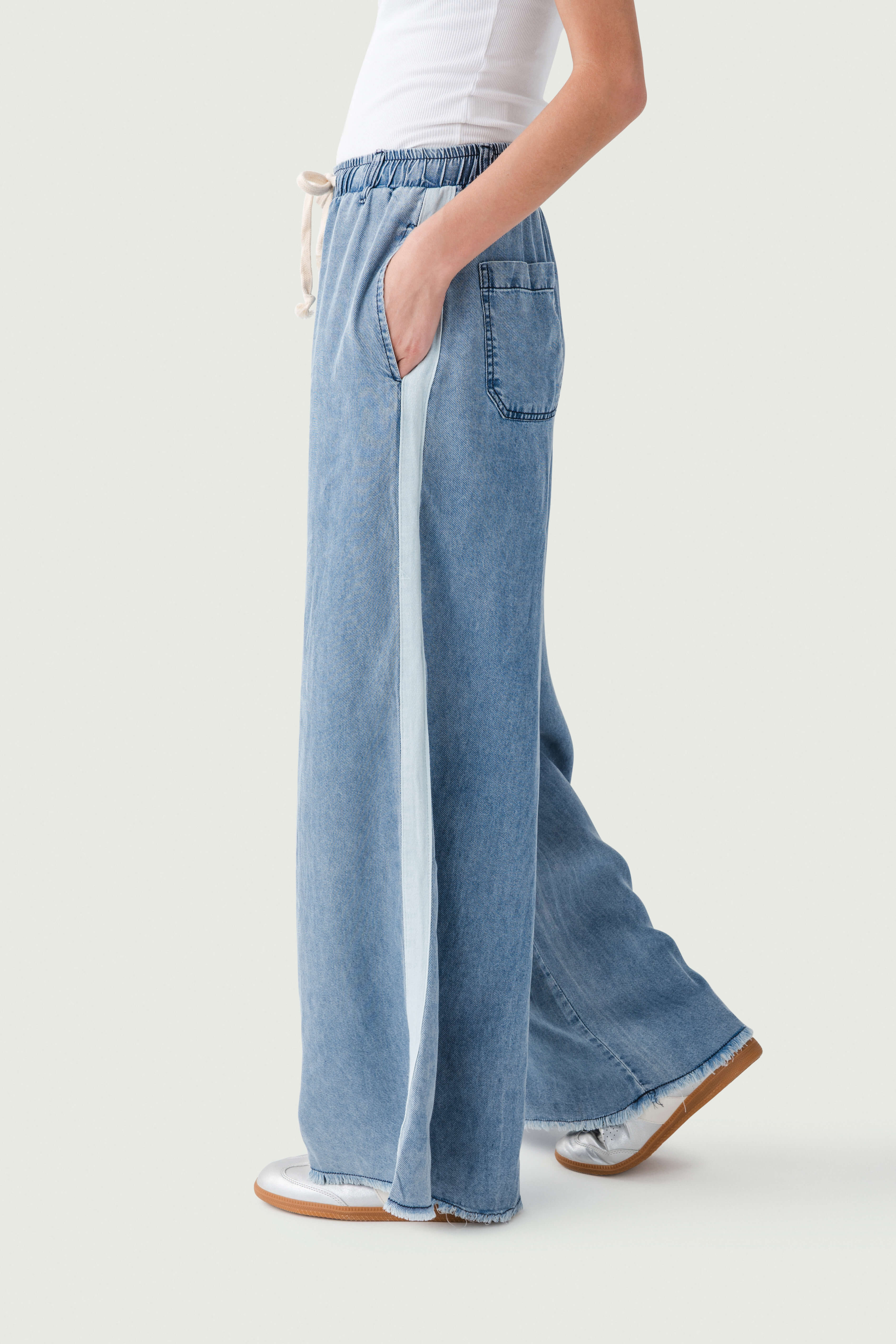 - Frayed hem that adds a trendy, casual aesthetic