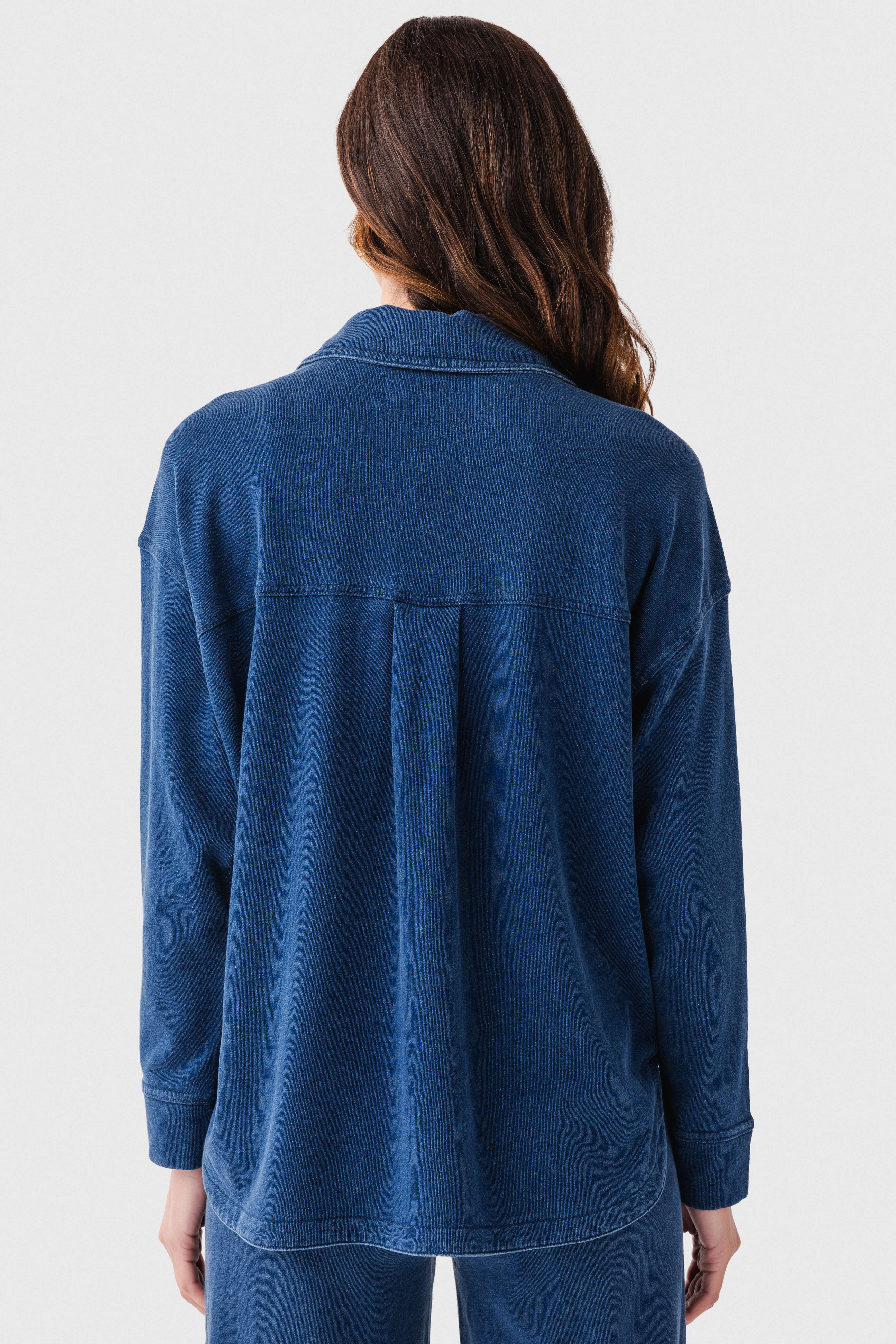 This long – sleeve, button – front denim shirt, also known as a “shacket,” offers both style and comfort. It has a relaxed, oversized fit that makes it perfect for layering over tees or tanks, or it can be worn on its own. The solid vintage indigo color gives it a classic look, and the back pleat enhances the fit and comfort.