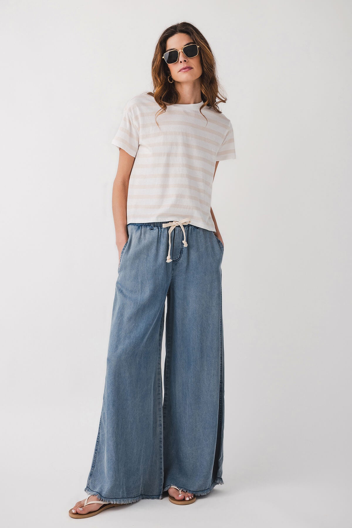 - Cropped hem ideal for high-waisted pairings