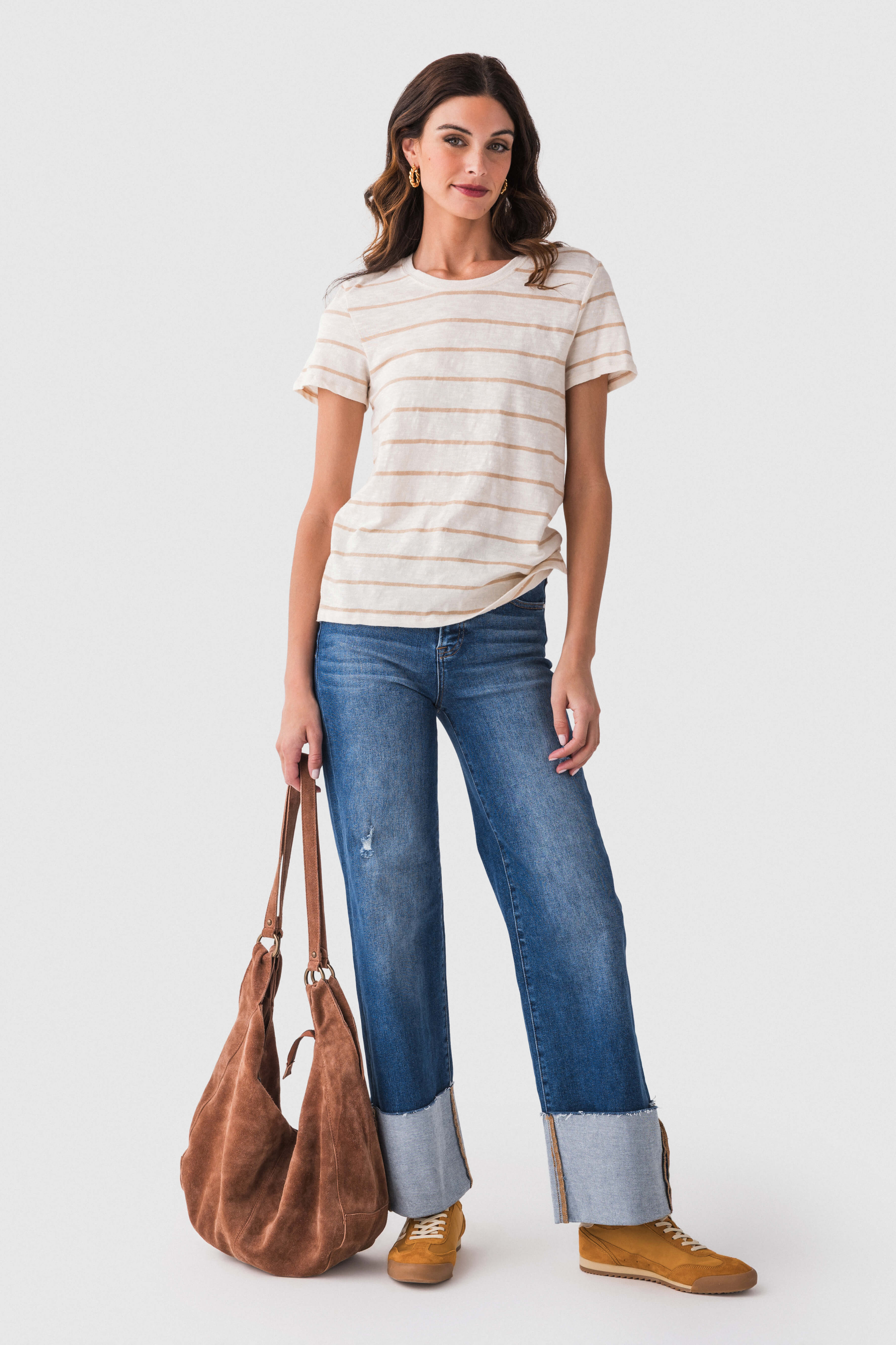 Striped High-rise Cropped Wide-leg Denim Jeans