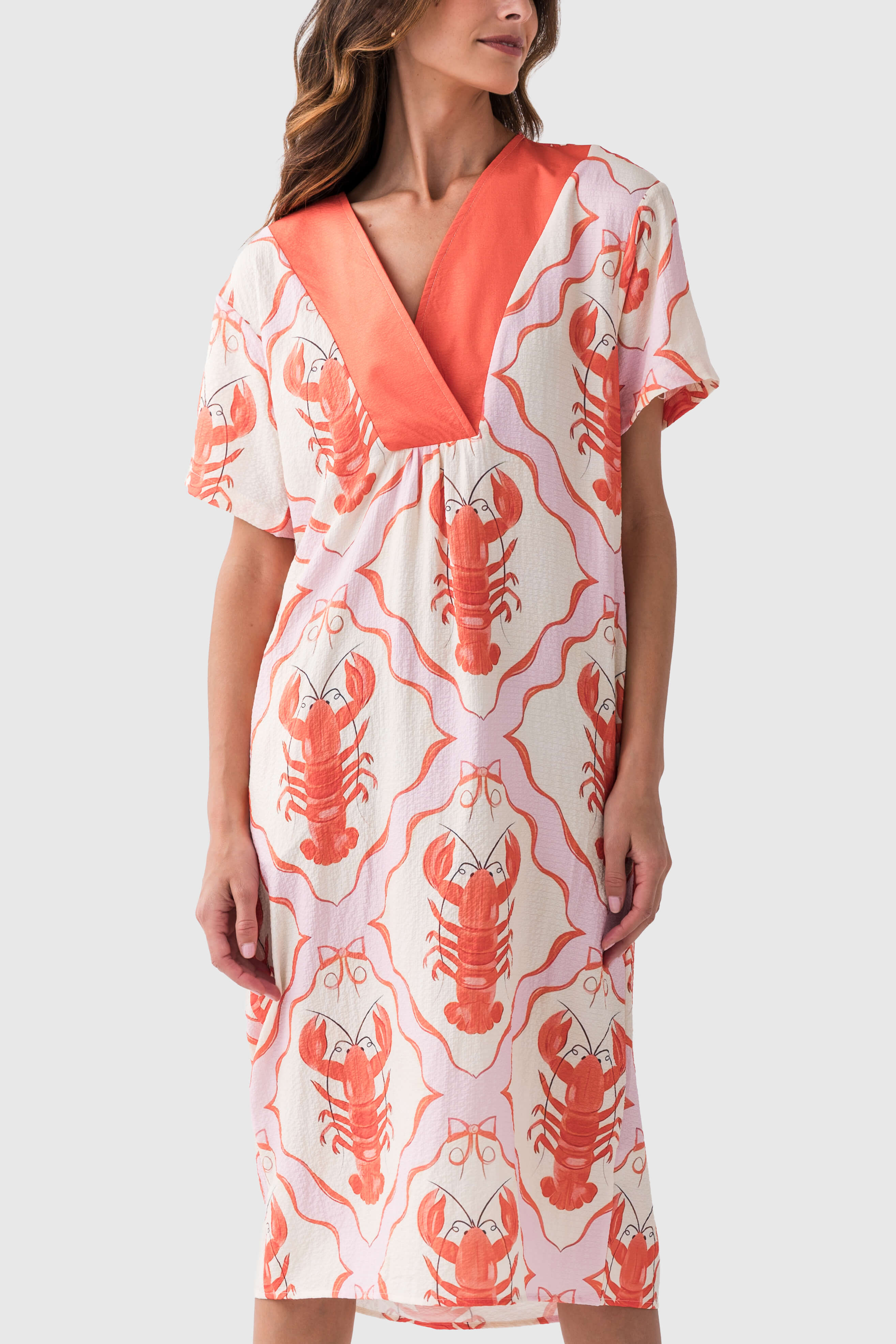 V-neck Textured Marine Print Casual Dress