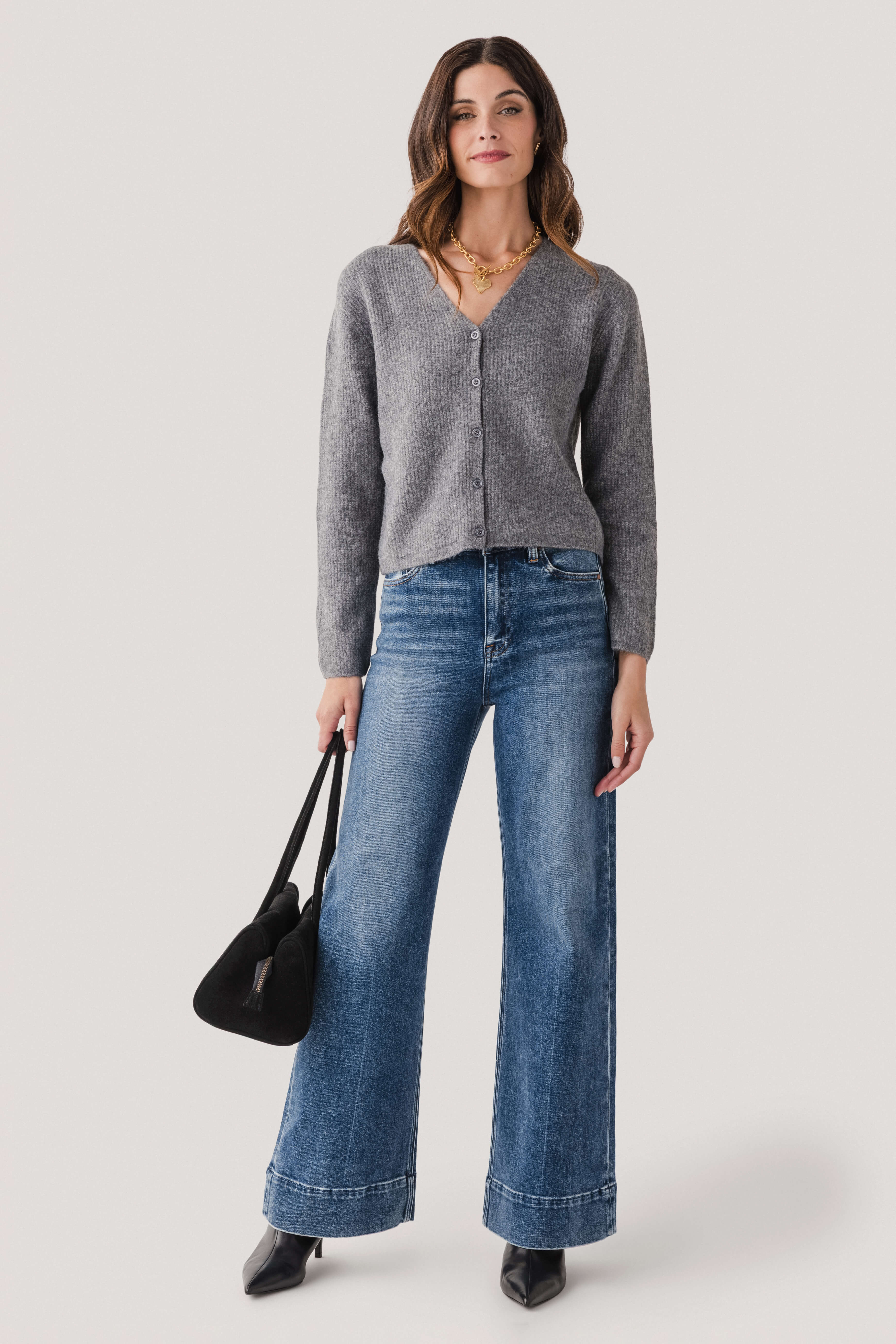V-neck Ribbed Cropped Cardigan